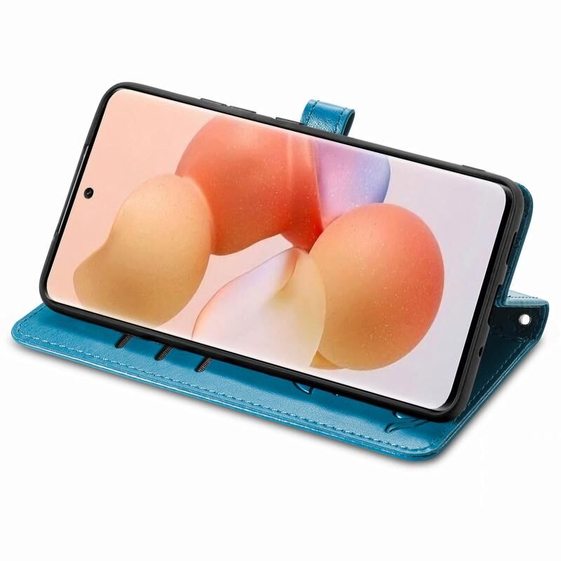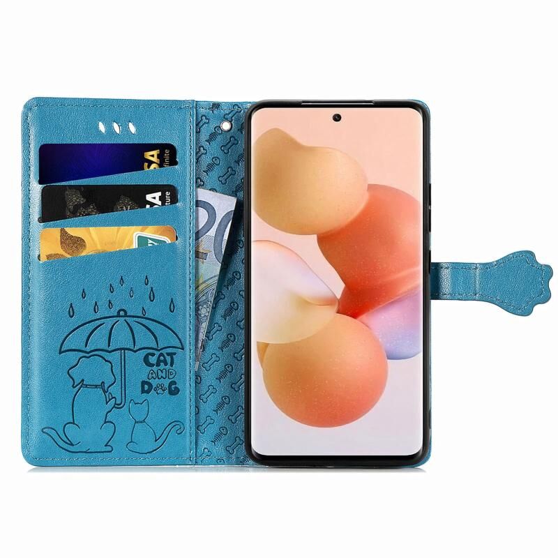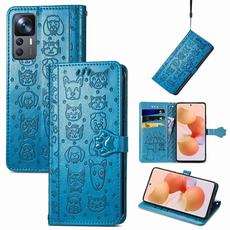 Θήκη τηλεφώνου από δέρμα με ανάγλυφα σχέδια χαριτωμένων γάτας και σκύλου για Xiaomi 12T / 12T Pro / Redmi K50 Ultra (Μπλε)