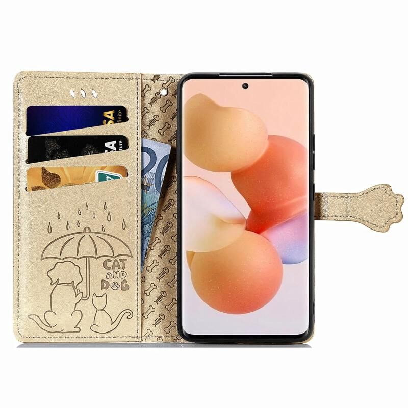 Θήκη τηλεφώνου από δέρμα με ανάγλυφα σχέδια χαριτωμένων γάτας και σκύλου για Xiaomi 12T / 12T Pro / Redmi K50 Ultra (Μπλε)