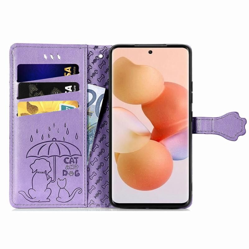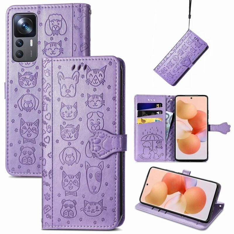 Θήκη τηλεφώνου από δέρμα με ανάγλυφα σχέδια χαριτωμένων γάτας και σκύλου για Xiaomi 12T / 12T Pro / Redmi K50 Ultra (Μπλε)