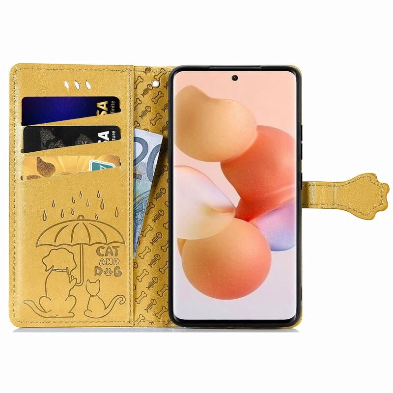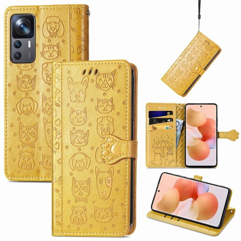 Θήκη τηλεφώνου από δέρμα με ανάγλυφα σχέδια χαριτωμένων γάτας και σκύλου για Xiaomi 12T / 12T Pro / Redmi K50 Ultra (Μπλε)