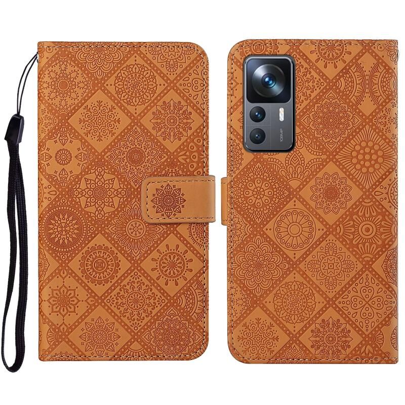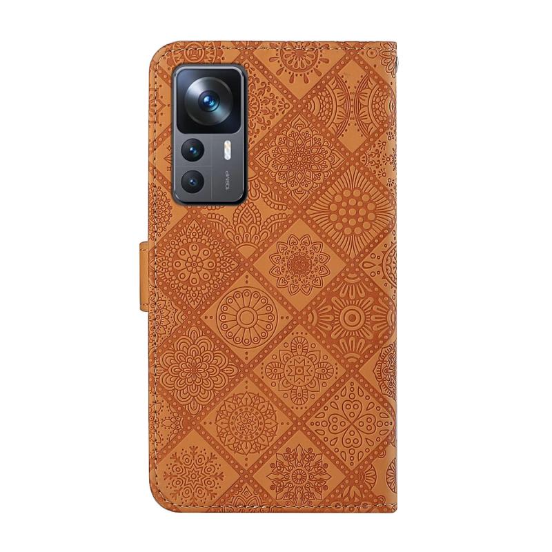 Θήκη τηλεφώνου δερμάτινη με ανάγλυφο σχέδιο εθνοτικού στυλ για Xiaomi 12T / 12T Pro / Redmi K50 Ultra (Πορτοκαλί)