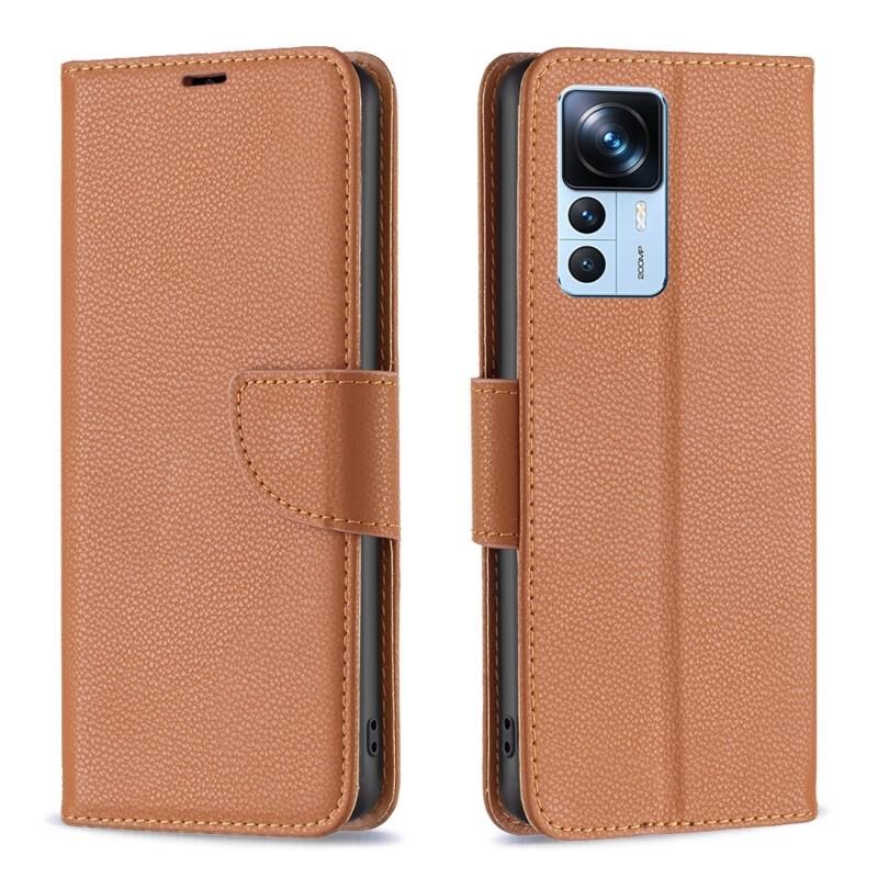 Για Xiaomi 12T / 12T Pro / Redmi K50 Ultra Litchi Texture Pure Color δέρμα τηλέφωνο υπόθεση (καφέ)