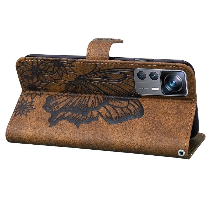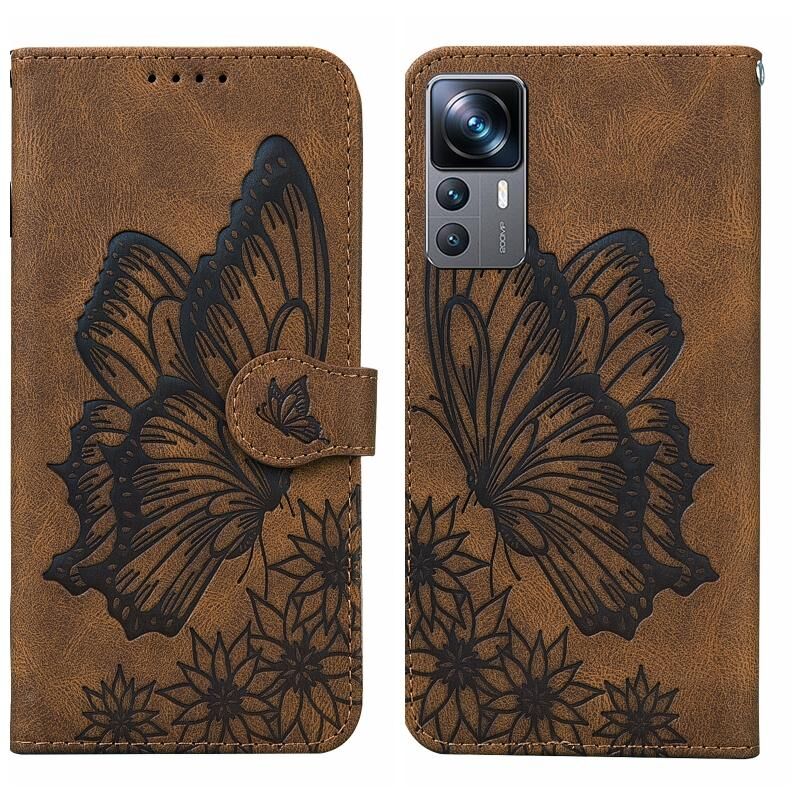 Θήκη τηλεφώνου δερμάτινη οριζόντιας αναδίπλωσης για Xiaomi 12T / 12T Pro / Redmi K50 Ultra με ανάγλυφο σχέδιο πεταλούδων και υφή retro (Μαύρο)