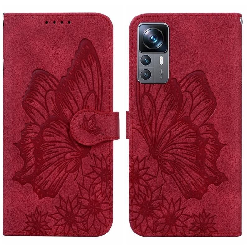 Θήκη τηλεφώνου δερμάτινη οριζόντιας αναδίπλωσης για Xiaomi 12T / 12T Pro / Redmi K50 Ultra με ανάγλυφο σχέδιο πεταλούδων και υφή retro (Μαύρο)
