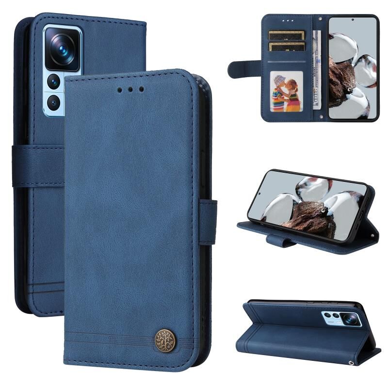 Θήκη τηλεφώνου Xiaomi 12T / 12T Pro / Redmi K50 Ultra με αίσθηση δέρματος, μεταλλικά κουμπιά και σχέδιο Δέντρου της Ζωής (Μπλε)
