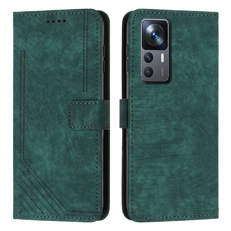 Για Xiaomi 12T / 12T Pro / Redmi K50 Ultra Skin Feel Stripe Pattern Δερμάτινη θήκη τηλεφώνου με κορδόνι (πράσινο)