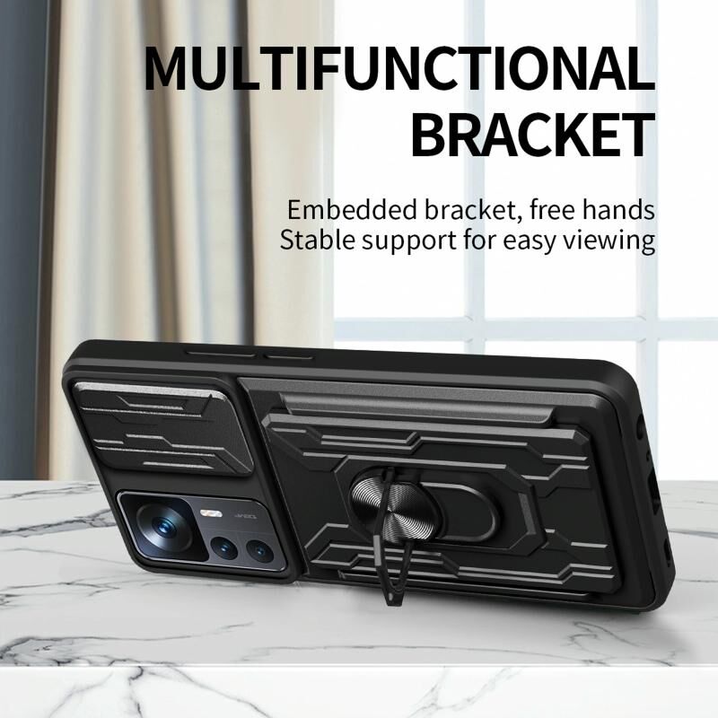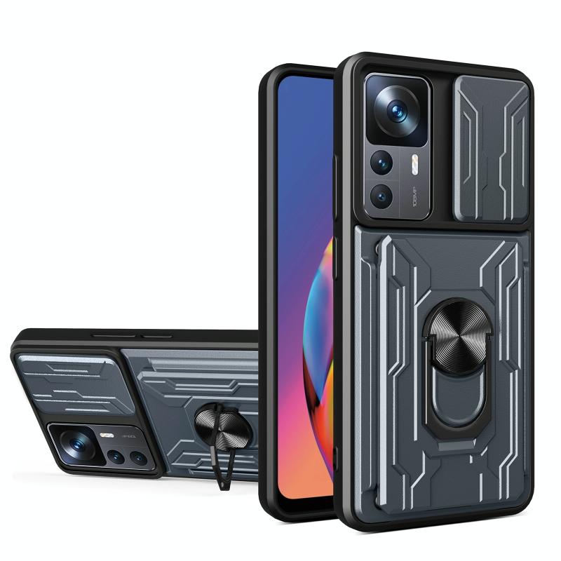 Θήκη τηλεφώνου για Xiaomi 12T / 12T Pro / Redmi K50 Ultra με συρόμενο προστατευτικό κάμερας Camshield, κατασκευασμένη από TPU+PC με υποδοχή κάρτας (Γκρι)