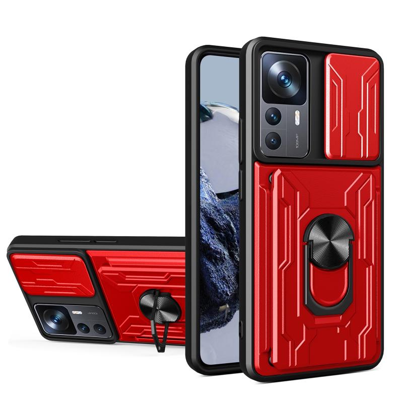 Θήκη τηλεφώνου για Xiaomi 12T / 12T Pro / Redmi K50 Ultra με συρόμενο προστατευτικό κάμερας Camshield, κατασκευασμένη από TPU+PC με υποδοχή κάρτας (Κόκκινο)