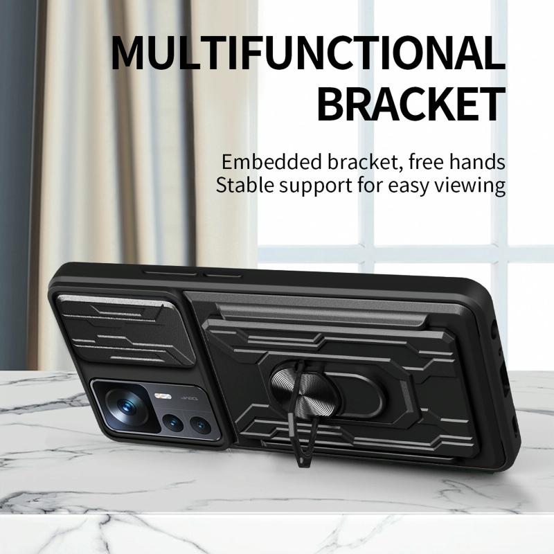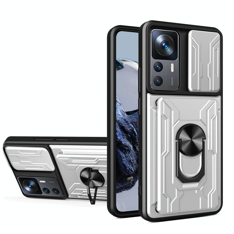 Θήκη τηλεφώνου για Xiaomi 12T / 12T Pro / Redmi K50 Ultra με συρόμενο προστατευτικό κάμερας Camshield, κατασκευασμένη από TPU+PC με υποδοχή κάρτας (Λευκό)