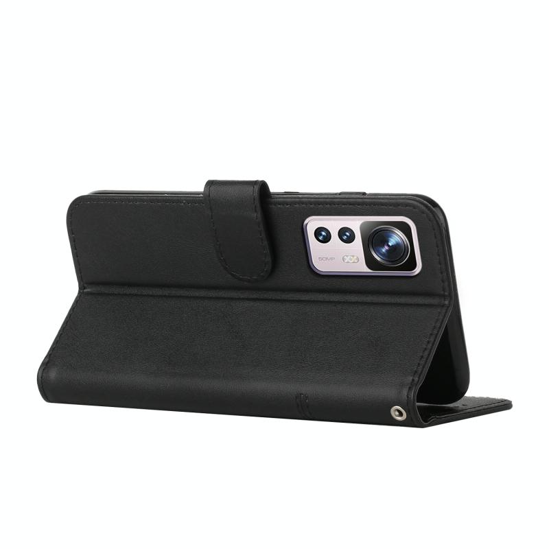 Θήκη τηλεφώνου από δέρμα με αγκράφα και υφή μοσχαριού για Xiaomi 12T/12T Pro/Redmi K50 Ultra (Μαύρο)