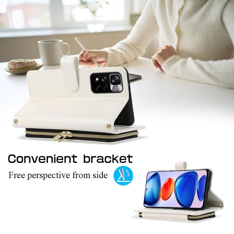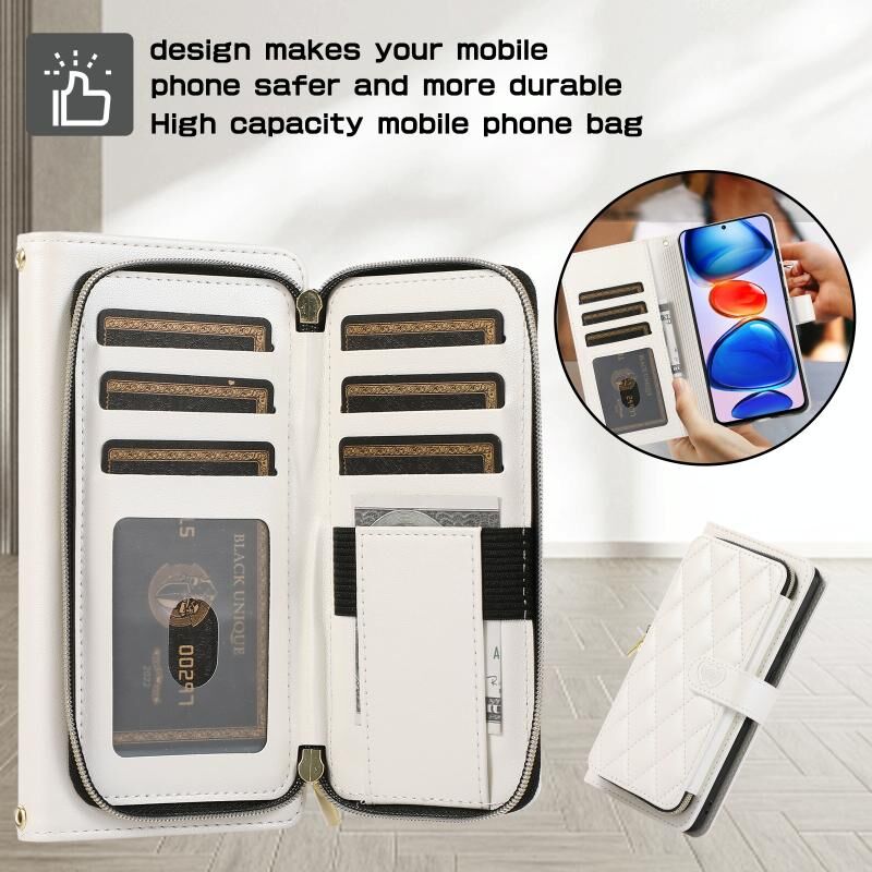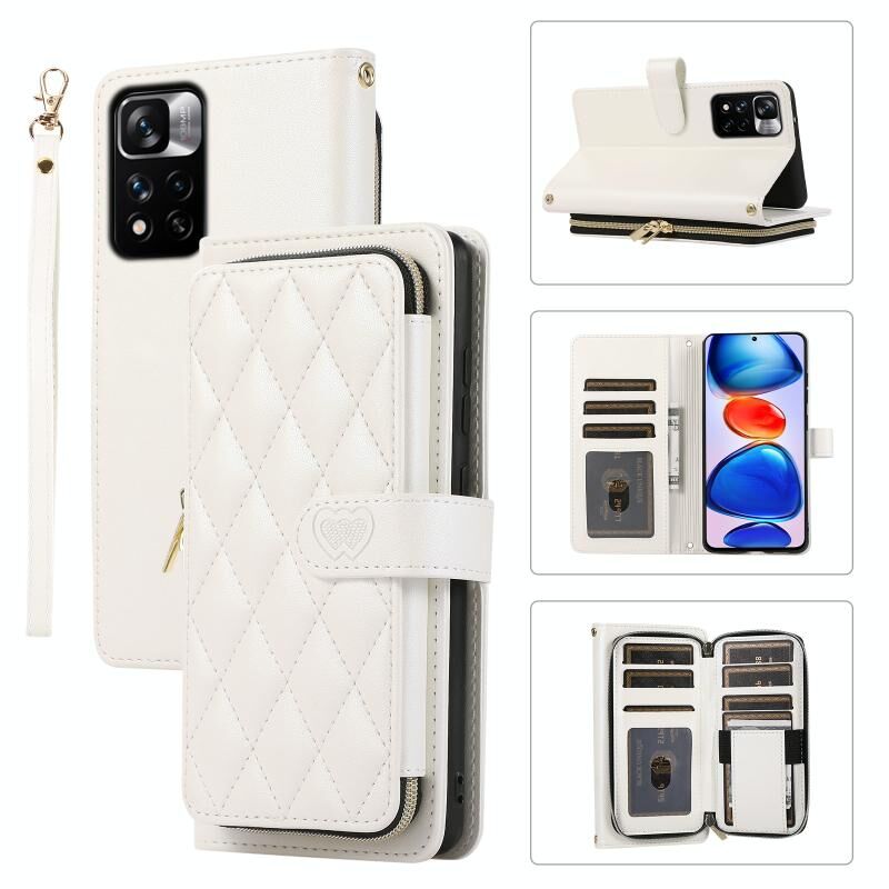 Για Xiaomi 12T / 12T Pro Rhombic Πλήρης φερμουάρ πορτοφόλι δερμάτινη θήκη τηλεφώνου (λευκό)