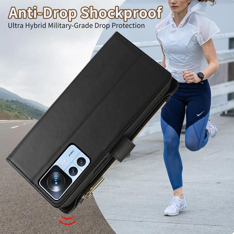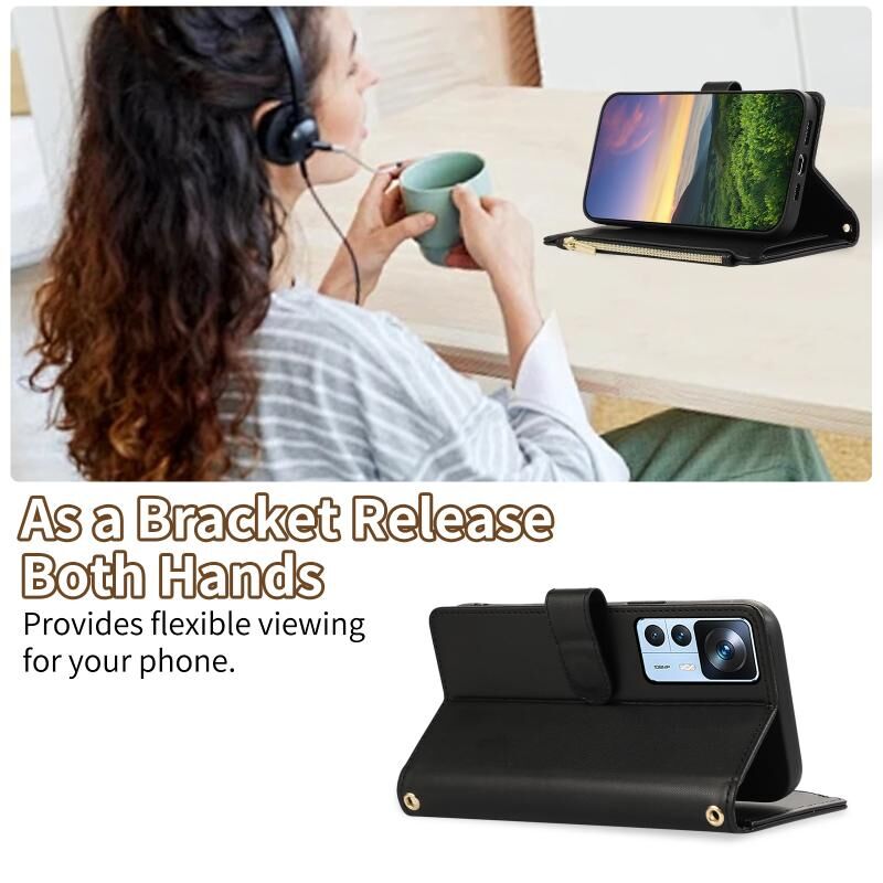 Για Xiaomi 12T / 12T Pro Rhombic φερμουάρ πορτοφόλι δερμάτινη θήκη τηλεφώνου (μαύρο)
