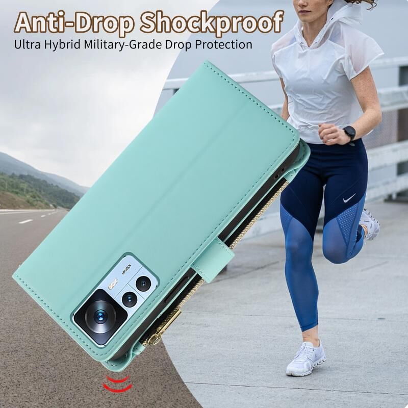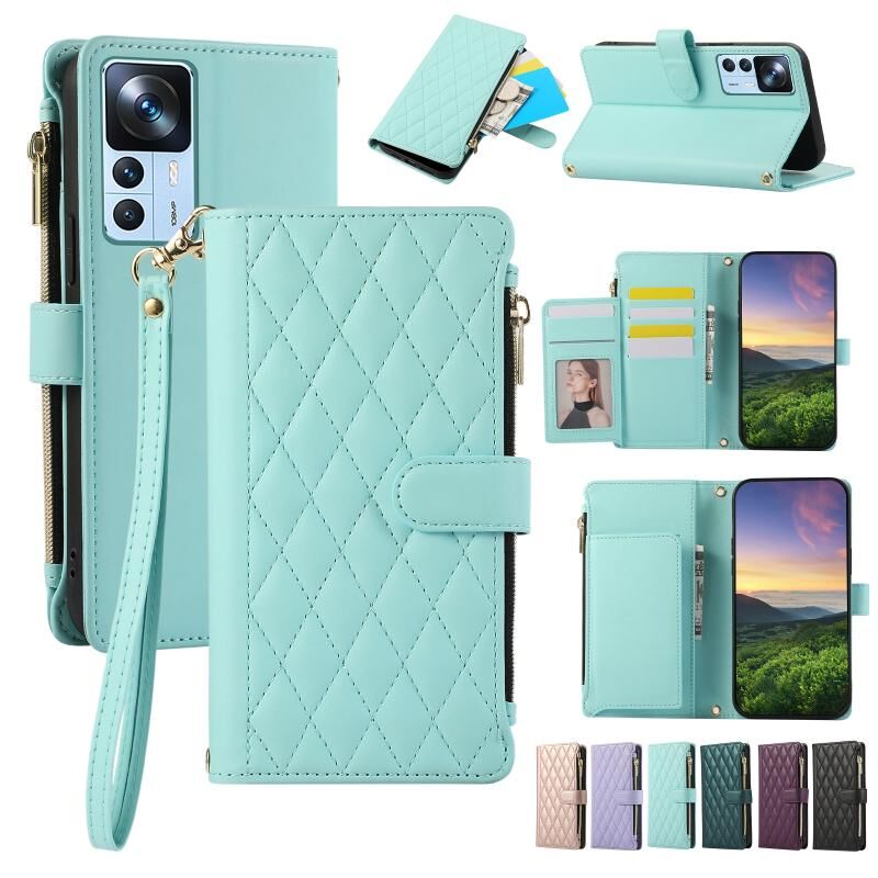Για Xiaomi 12T / 12T Pro Rhombic φερμουάρ πορτοφόλι δερμάτινη θήκη τηλεφώνου (Cyan)