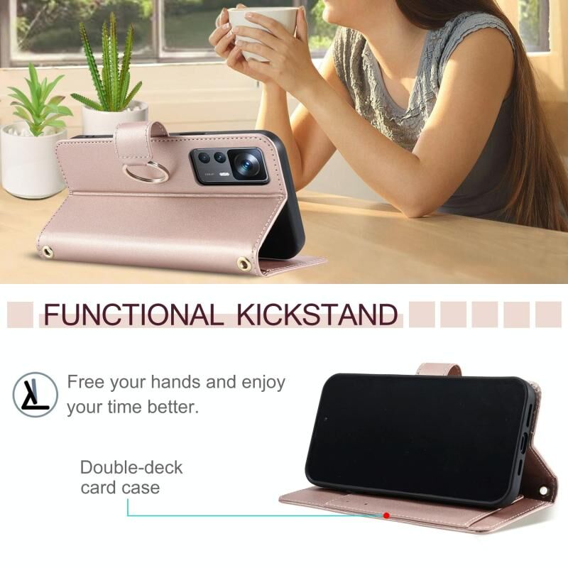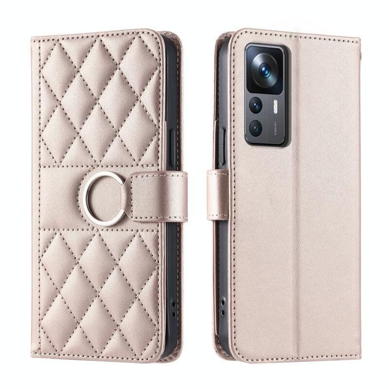 Για Xiaomi 12T / 12T Pro Δαχτυλίδι πόρπη ρομβοειδής δερμάτινη θήκη τηλεφώνου (Ροζ χρυσός)