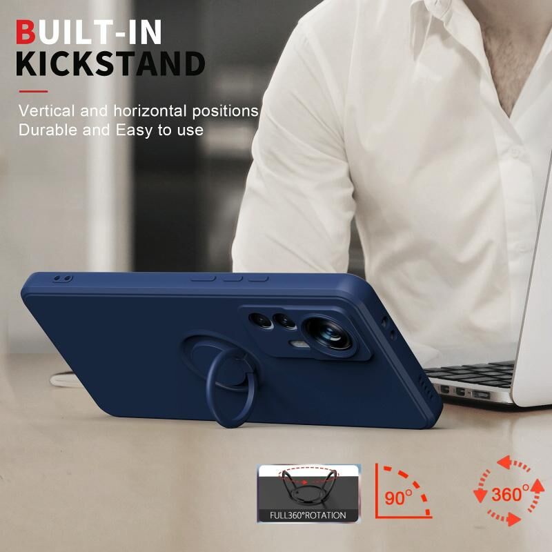 Για Xiaomi 12T / 12T Pro Ring Kickstand TPU σιλικόνης τηλέφωνο υπόθεση (σκούρο μπλε)