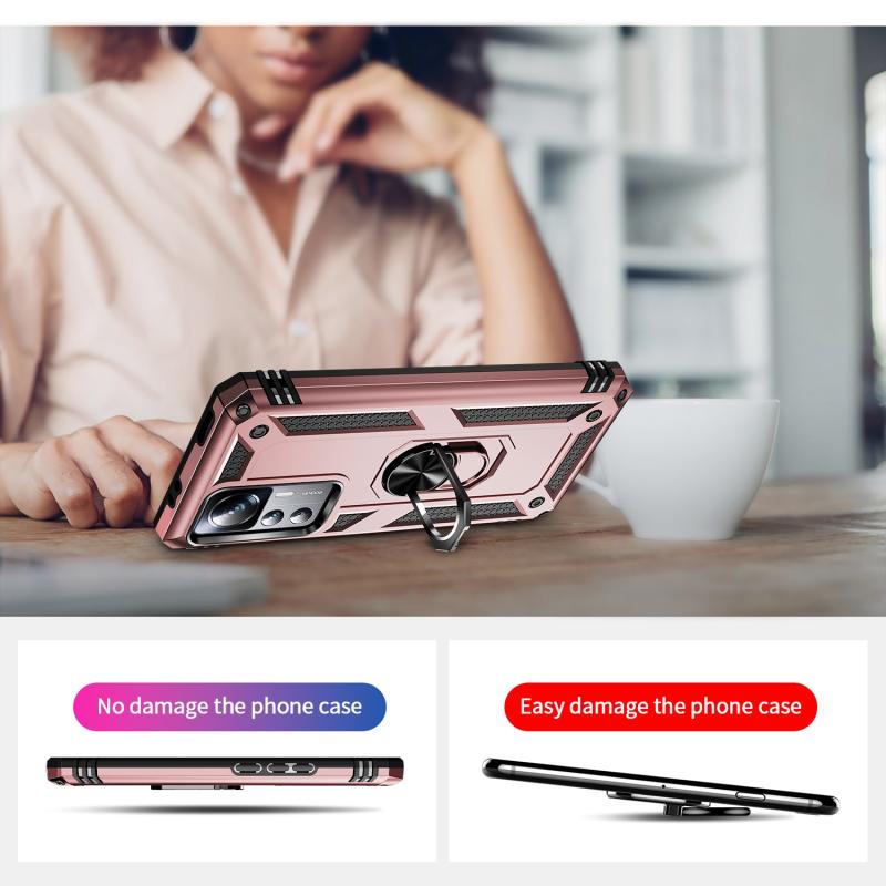 Θήκη κινητού τηλεφώνου για Xiaomi 12T / 12T Pro ανθεκτική σε κρούσεις, από TPU + PC με βάση στήριξης (Ροζ χρυσός)