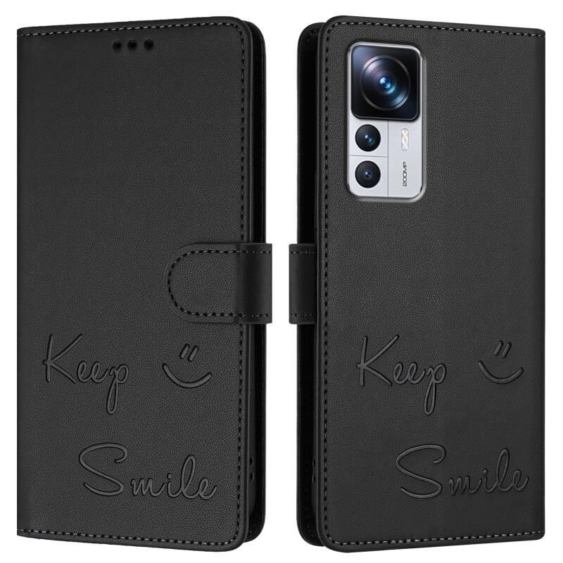 Για Xiaomi 12T / 12T Pro Χαμόγελο ανάγλυφο RFID δερμάτινη θήκη τηλεφώνου (Μαύρο)