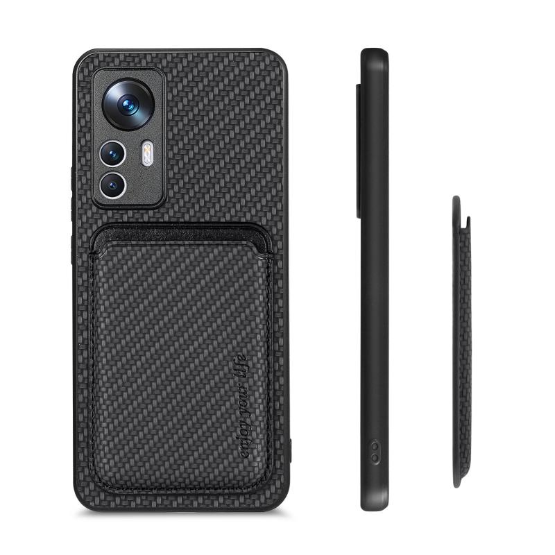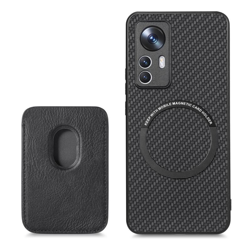 For Xiaomi 12T Carbon Fiber Leather Card Magsafe Phone Case(Black)