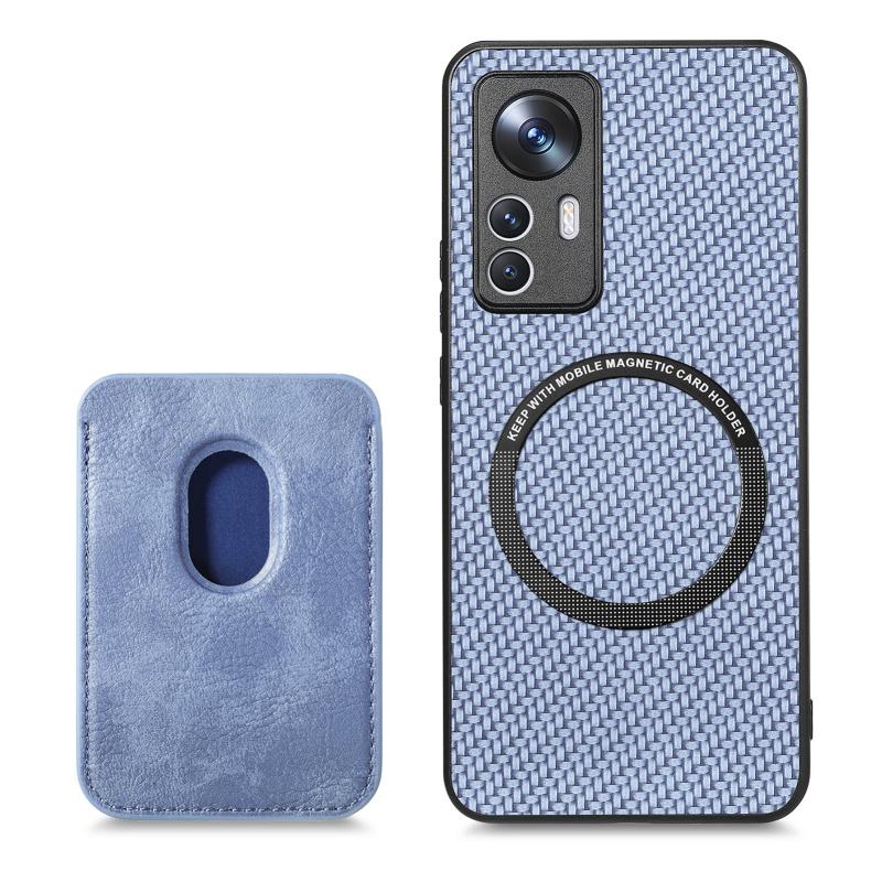 For Xiaomi 12T Carbon Fiber Leather Card Magsafe Phone Case(Blue)