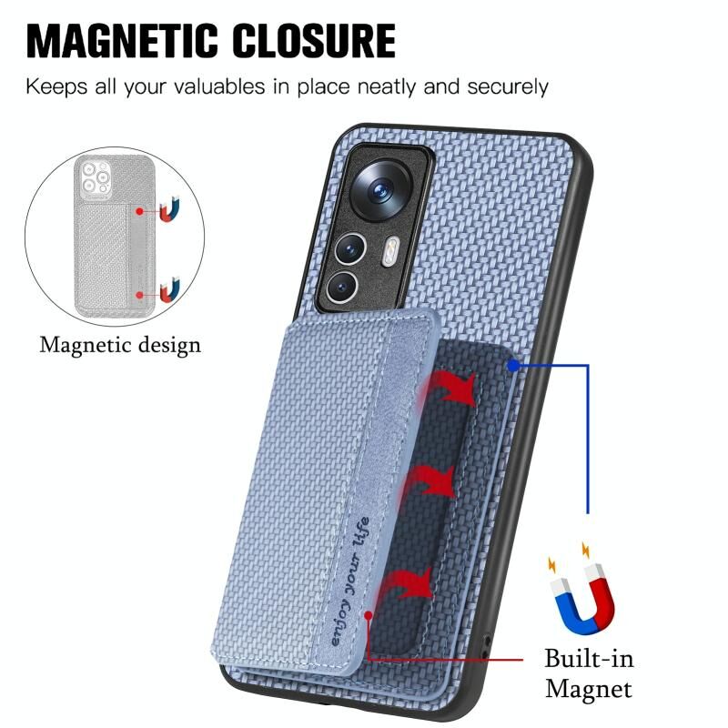 Για Xiaomi 12T Carbon Fiber μαγνητική κάρτα τσάντα υπόθεση τηλεφώνου (Μπλε)