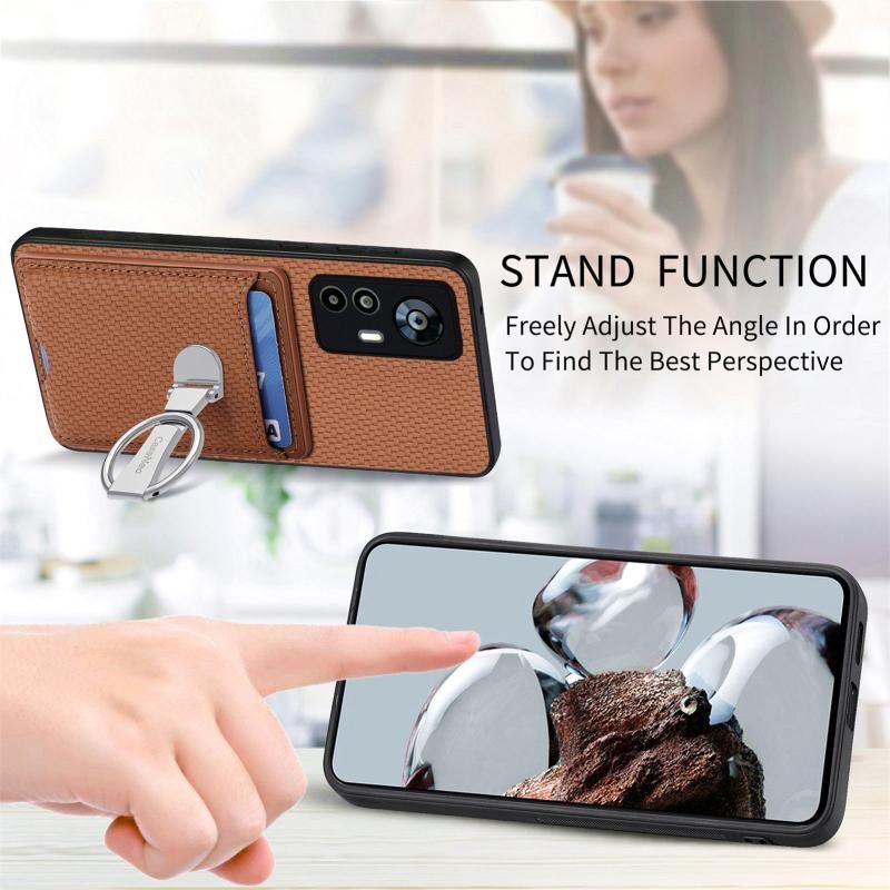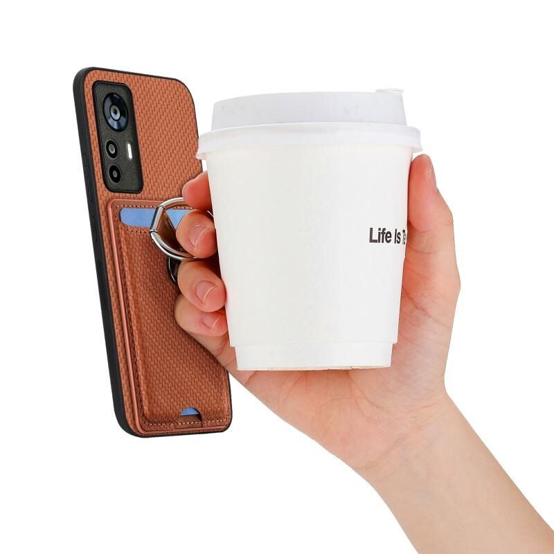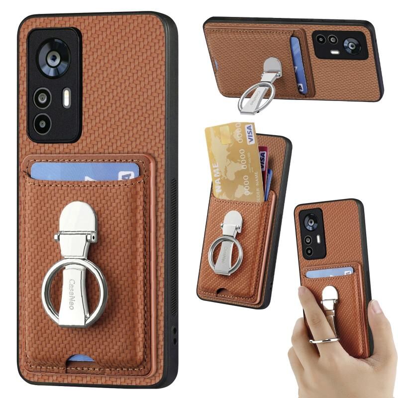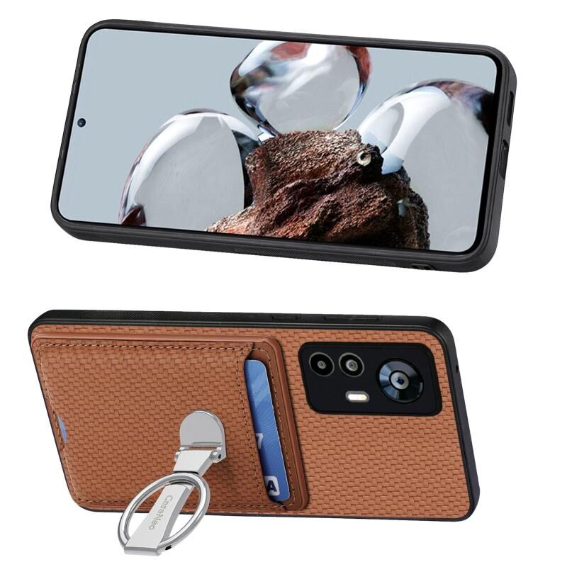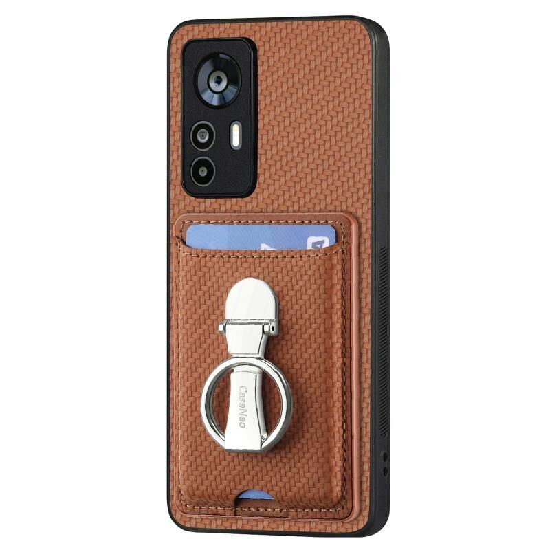 Για Xiaomi 12T Pro Carbon Fiber κάρτα πορτοφόλι δαχτυλίδι κάτοχος τηλέφωνο υπόθεση (καφέ)