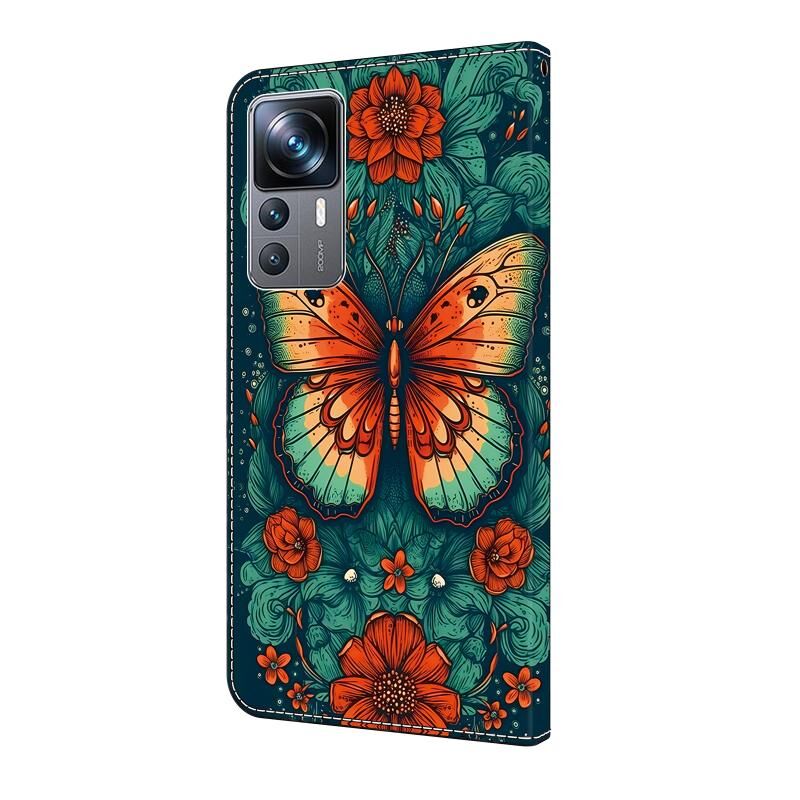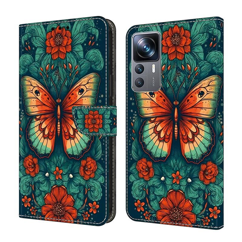 Θήκη τηλεφώνου Xiaomi 12T Pro από δέρμα με κρυστάλλινη βαφή (Λουλούδι Πεταλούδα)