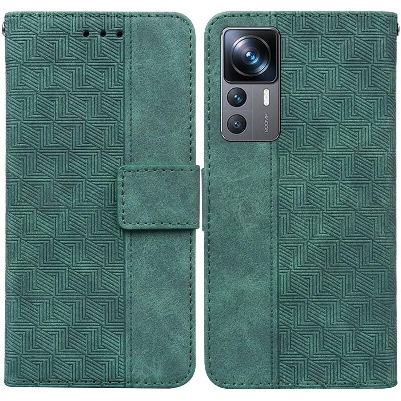 Για Xiaomi 12T Pro γεωμετρική ανάγλυφη Flip υπόθεση τηλεφώνου δέρμα (πράσινο)