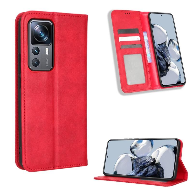 Για Xiaomi 12T Pro Μαγνητική πόρπη ρετρό υφή δερμάτινη θήκη τηλεφώνου (Κόκκινο)