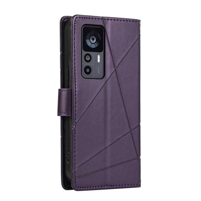 Θήκη τηλεφώνου Xiaomi 12T από γνήσιο δέρμα PU με ανάγλυφη υφή και λεπτομέρεια γραμμής (Μπλε)