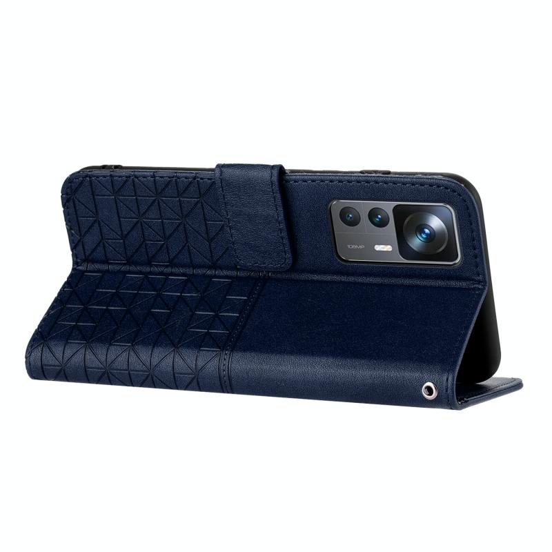 Θήκη δερμάτινη με κορδόνι για Xiaomi 12T με ανάγλυφη υφή (Μπλε)