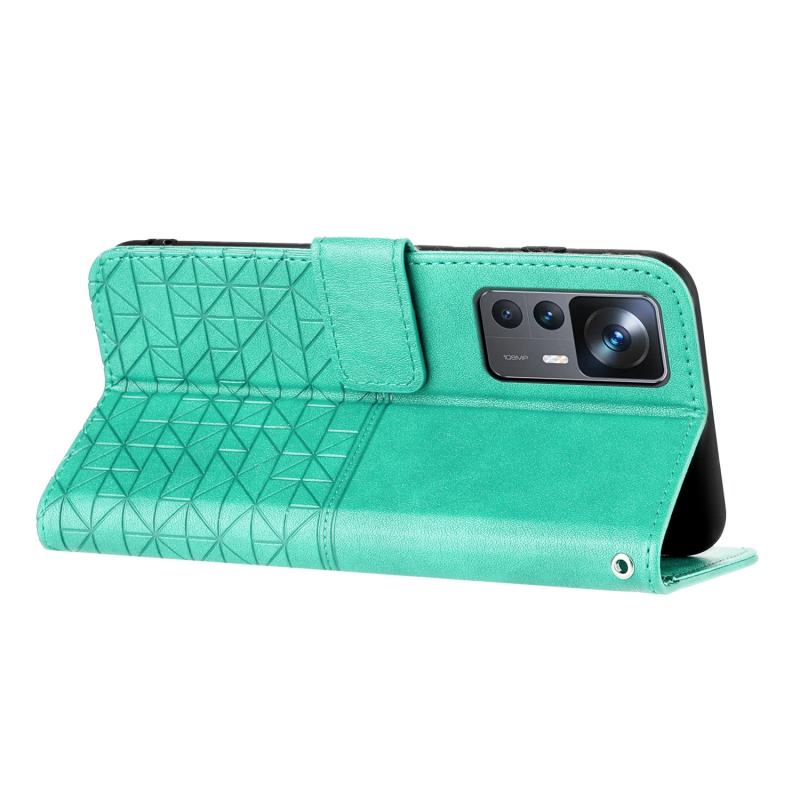Θήκη δερμάτινη με κορδόνι για Xiaomi 12T με ανάγλυφη υφή (Πράσινο)