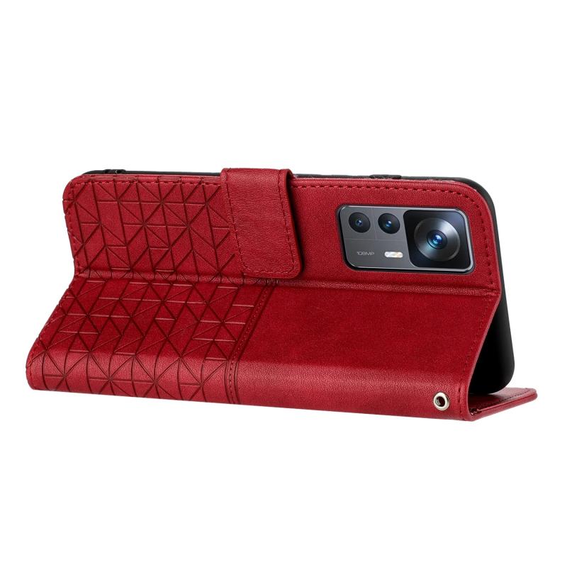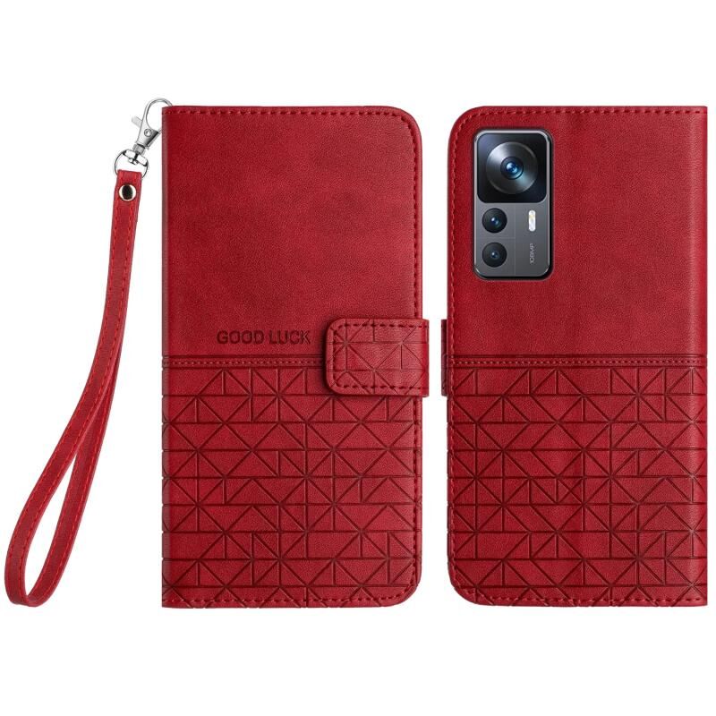 Θήκη δερμάτινη με κορδόνι για Xiaomi 12T με ανάγλυφη υφή (Κόκκινο)