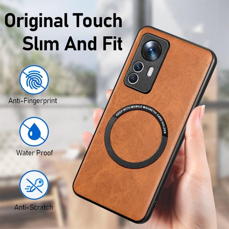 Θήκη τηλεφώνου από δέρμα με μαγνητική σύνδεση Magsafe για Xiaomi 12T, μονόχρωμη (Μαύρο)
