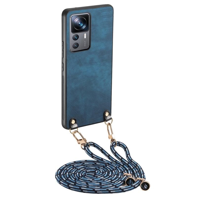 Για Xiaomi 12T εκλεκτής ποιότητας δέρμα PC πίσω κάλυψη υπόθεση τηλεφώνου με λουράκι σταυρού (μπλε)