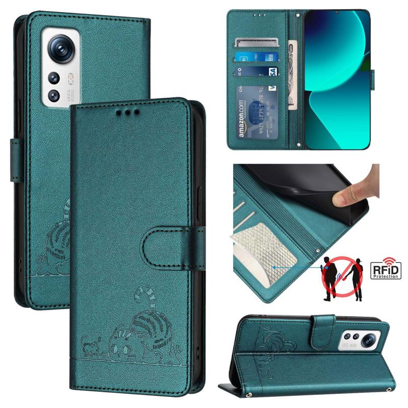 Θήκη Xiaomi 12X με σχέδιο Γάτας/Ποντικιού & Λουρί Καρπού RFID (Πράσινο Παγωνιού)