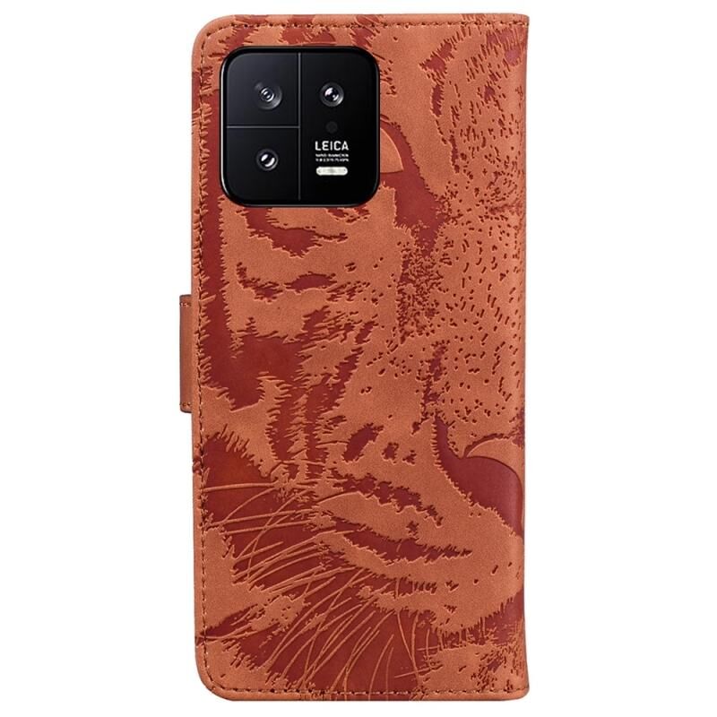 Θήκη δερμάτινη με ανάγλυφο τίγρη για Xiaomi 13 5G (Καφέ)