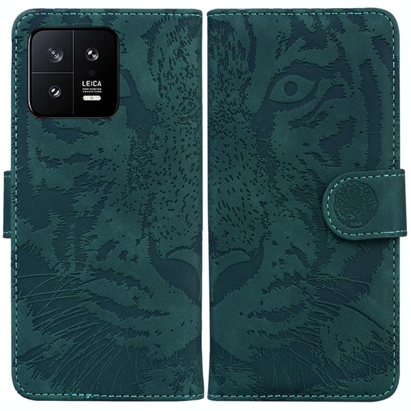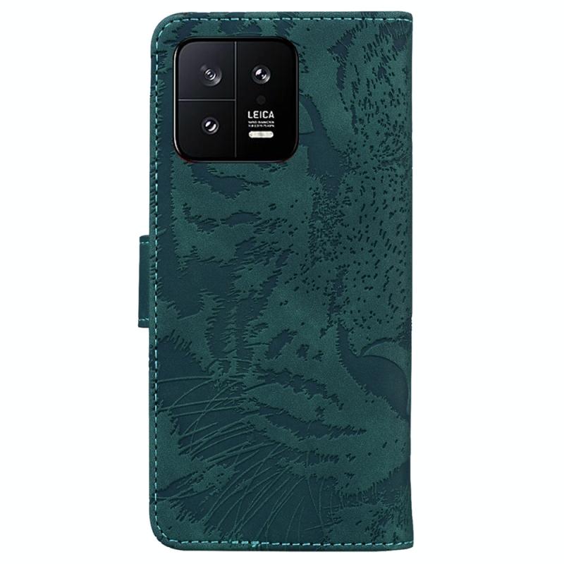 Θήκη δερμάτινη με ανάγλυφο τίγρη για Xiaomi 13 5G (Πράσινο)