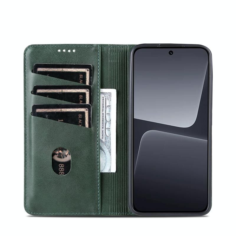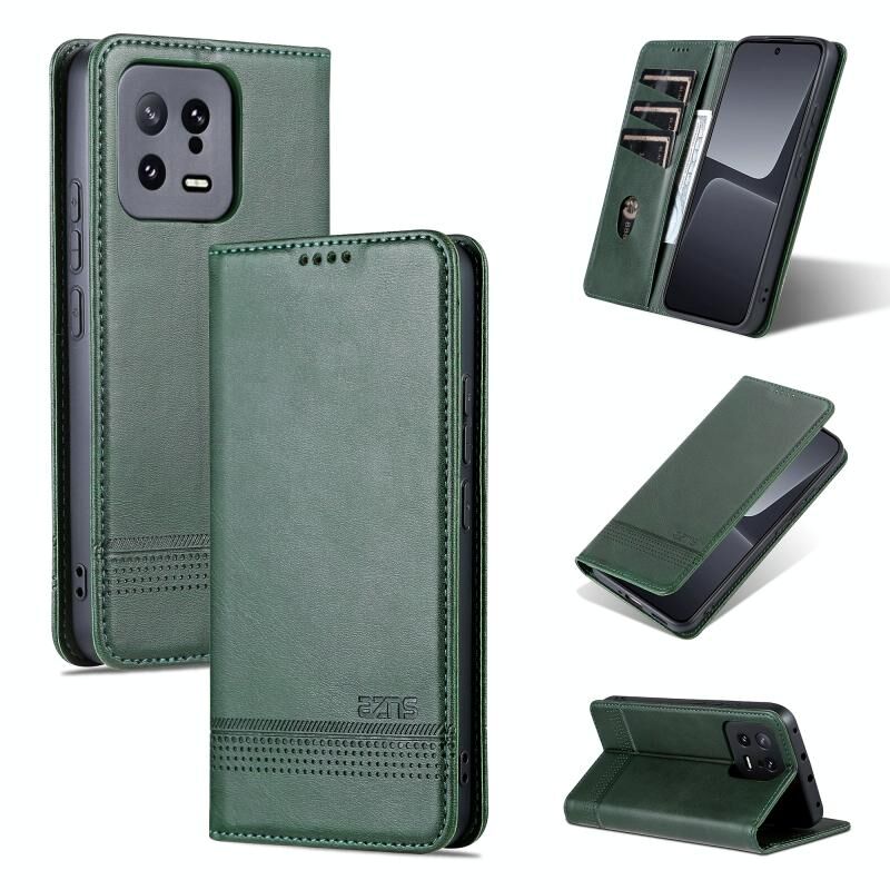 Για Xiaomi 13 AZNS Μαγνητικό μοσχάρι υφή Flip υπόθεση τηλεφώνου δέρμα (σκούρο πράσινο) (AZNS)