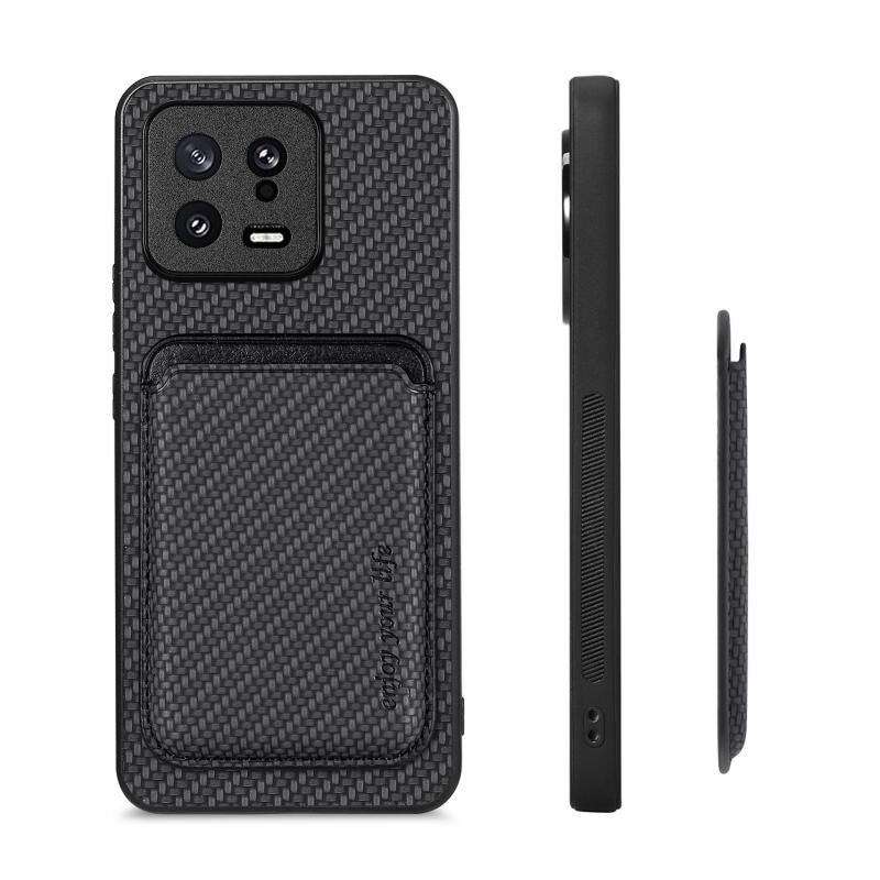 Θήκη τηλεφώνου Xiaomi 13 από ανθρακονήματα και δέρμα με μαγνητική κάρτα (Μαύρο)