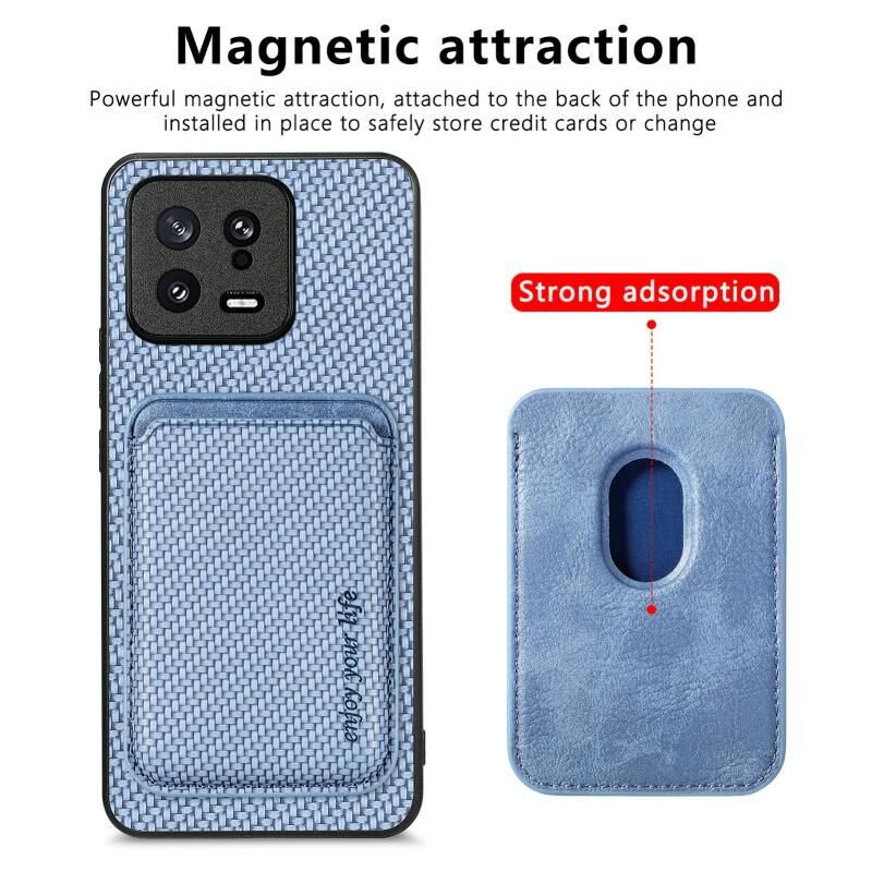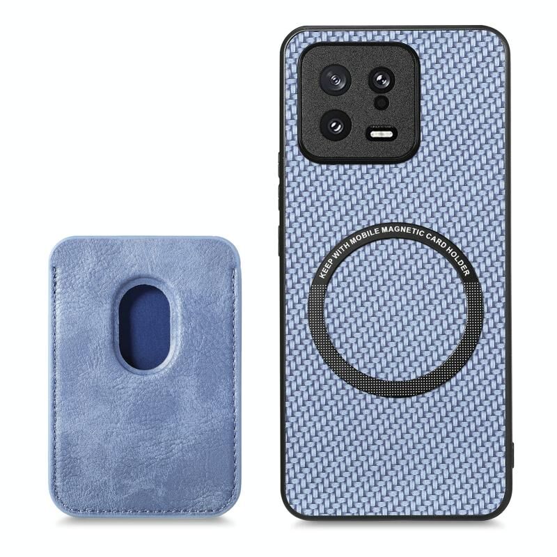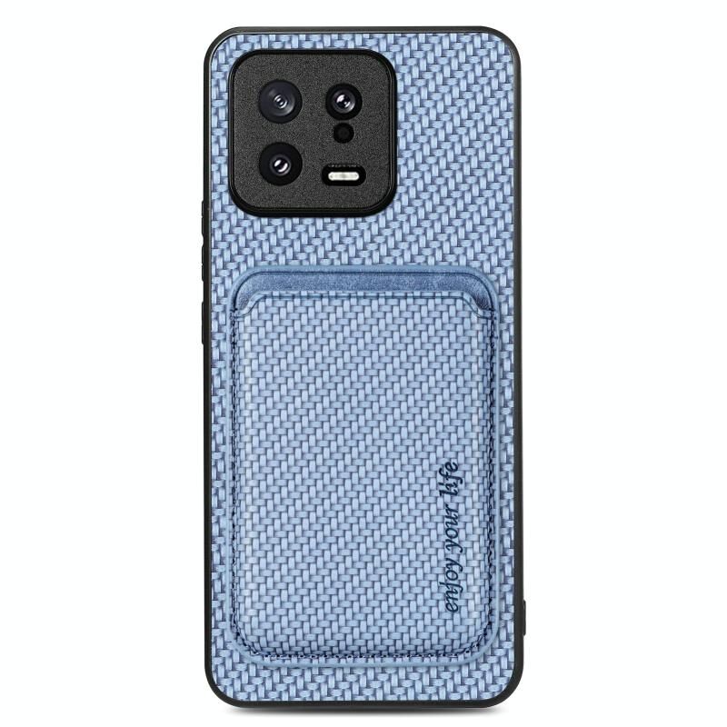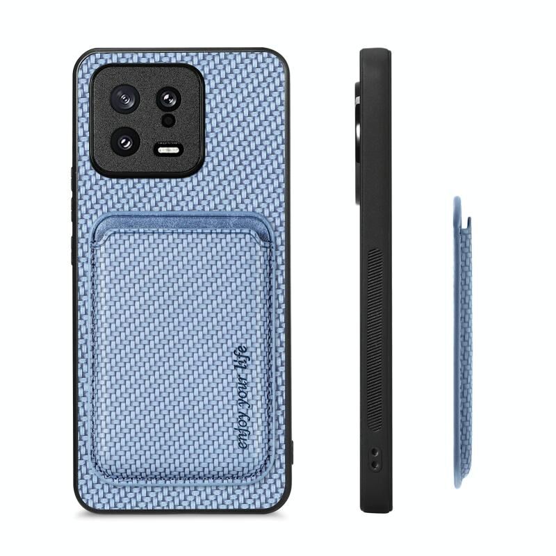 Θήκη τηλεφώνου Xiaomi 13 από ανθρακονήματα και δέρμα με μαγνητική κάρτα (Μπλε)