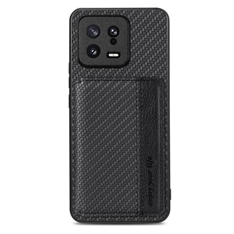 Για Xiaomi 13 Carbon Fiber μαγνητική κάρτα τσάντα υπόθεση τηλεφώνου (Μαύρο)