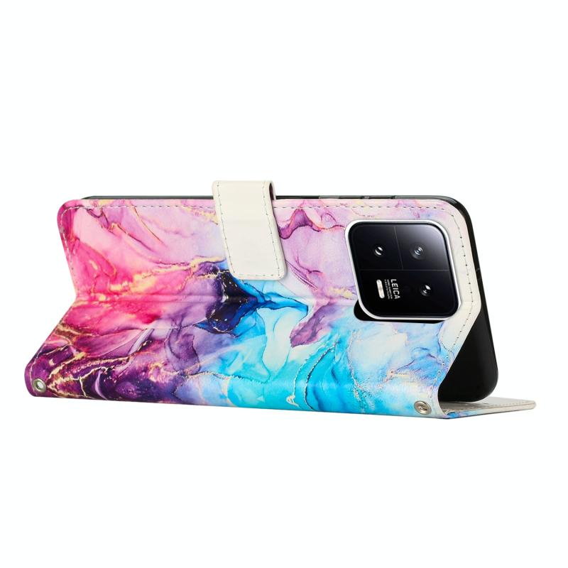 For Xiaomi 13 Crossbody Painted Marble Pattern Leather Phone Case(Pink Purple)