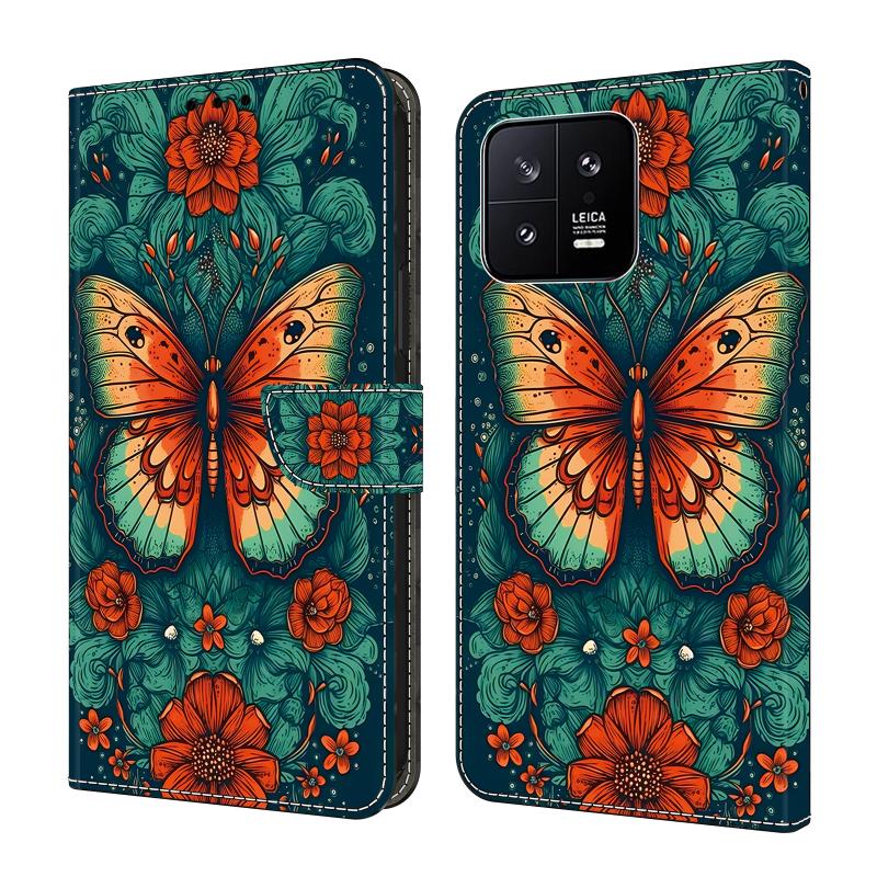 For Xiaomi 13 Crystal Painted Leather Phone case(Flower Butterfly)