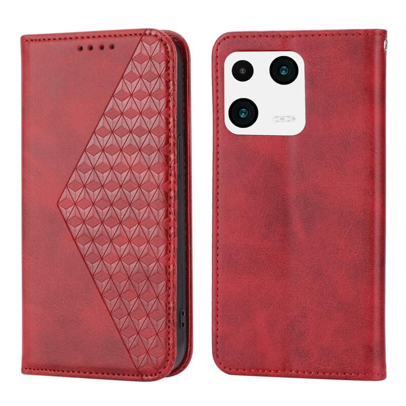 Για Xiaomi 13 Cubic Grid Calf Texture μαγνητική υπόθεση τηλεφώνου δέρμα (κόκκινο)