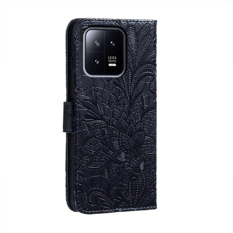 Για Xiaomi 13 δαντέλα λουλούδι ανάγλυφο Flip υπόθεση τηλεφώνου δέρμα (σκούρο μπλε)