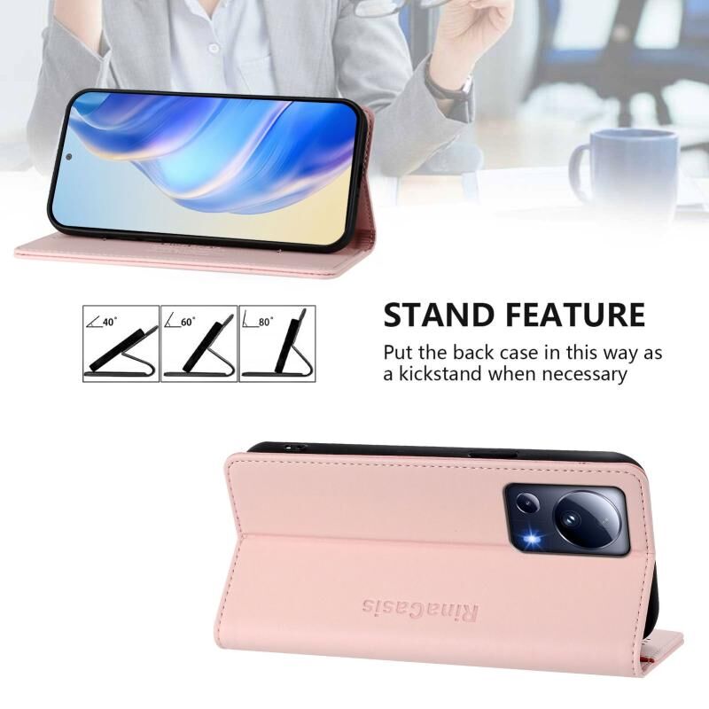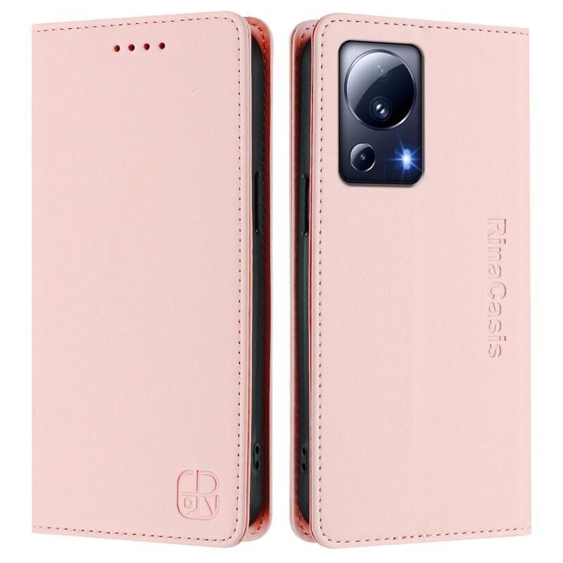 Θήκη τηλεφώνου δερμάτινη με μαγνητική απορρόφηση και προστασία RFID για Xiaomi 13 Lite 5G / Civi 2 RC01, διπλωμένη (Ροζ)