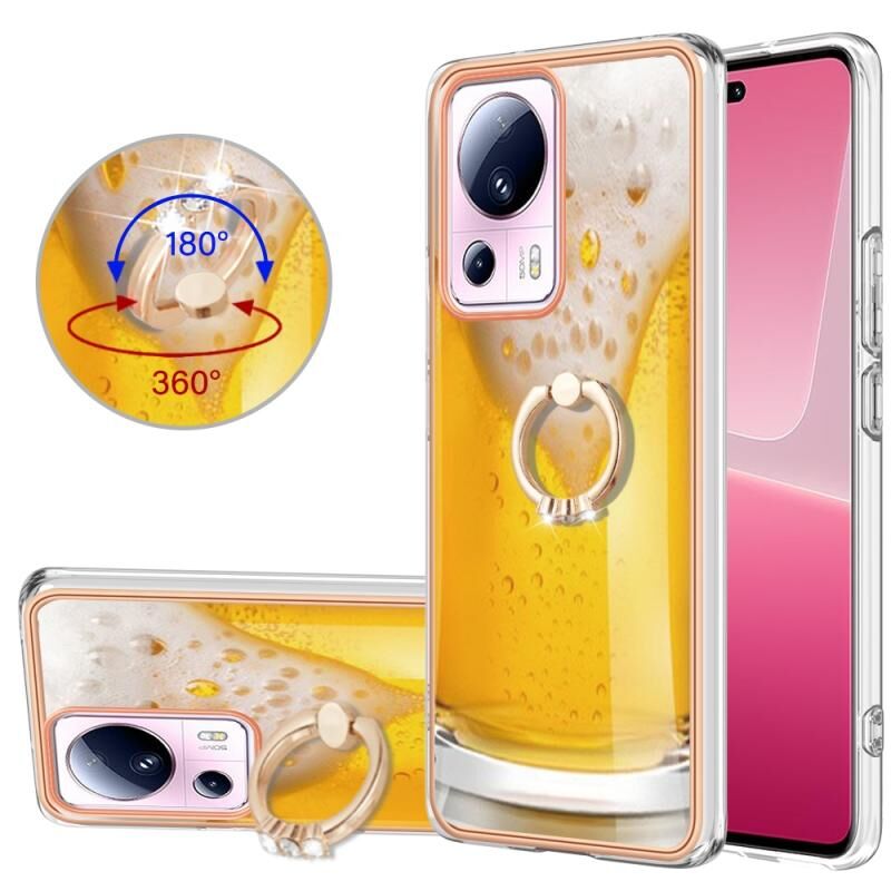 Θήκη τηλεφώνου για Xiaomi 13 Lite 5G με ηλεκτρολυτική επιμετάλλωση, διπλής όψης IMD με δακτύλιο στήριξης (Μπύρα βαρελίσια)
