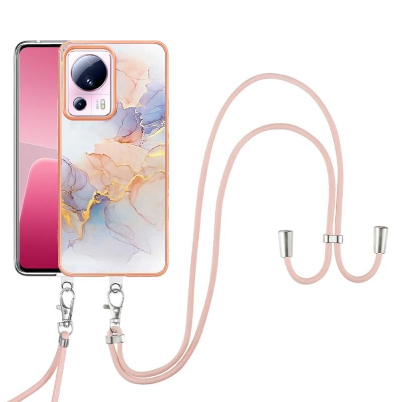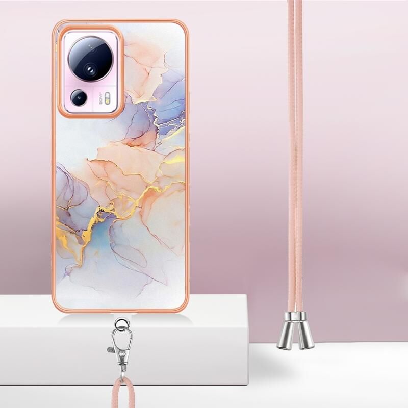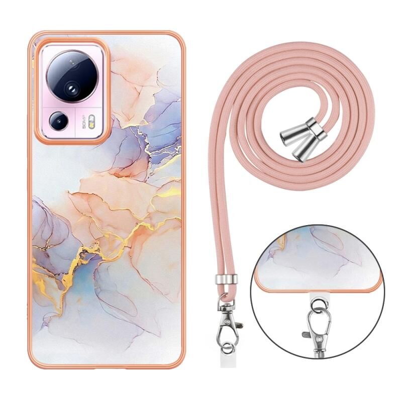 For Xiaomi 13 Lite 5G Electroplating IMD TPU Phone Case with Lanyard(White Marble)