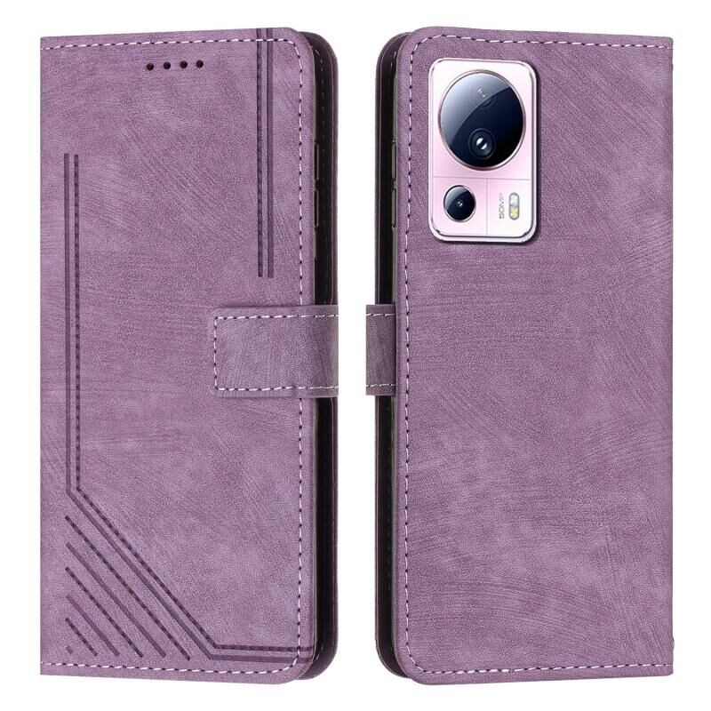 Για Xiaomi 13 Lite 5G Skin Feel Stripe Pattern δερμάτινη θήκη τηλεφώνου με κορδόνι (μωβ)