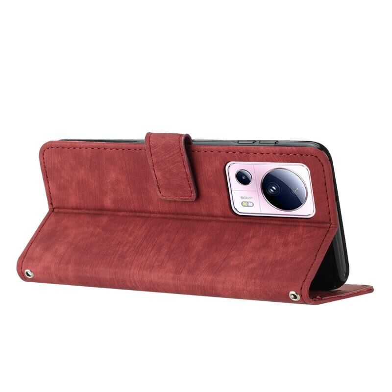 Για Xiaomi 13 Lite 5G Skin Feel Stripe Pattern δερμάτινη θήκη τηλεφώνου με κορδόνι (κόκκινο)